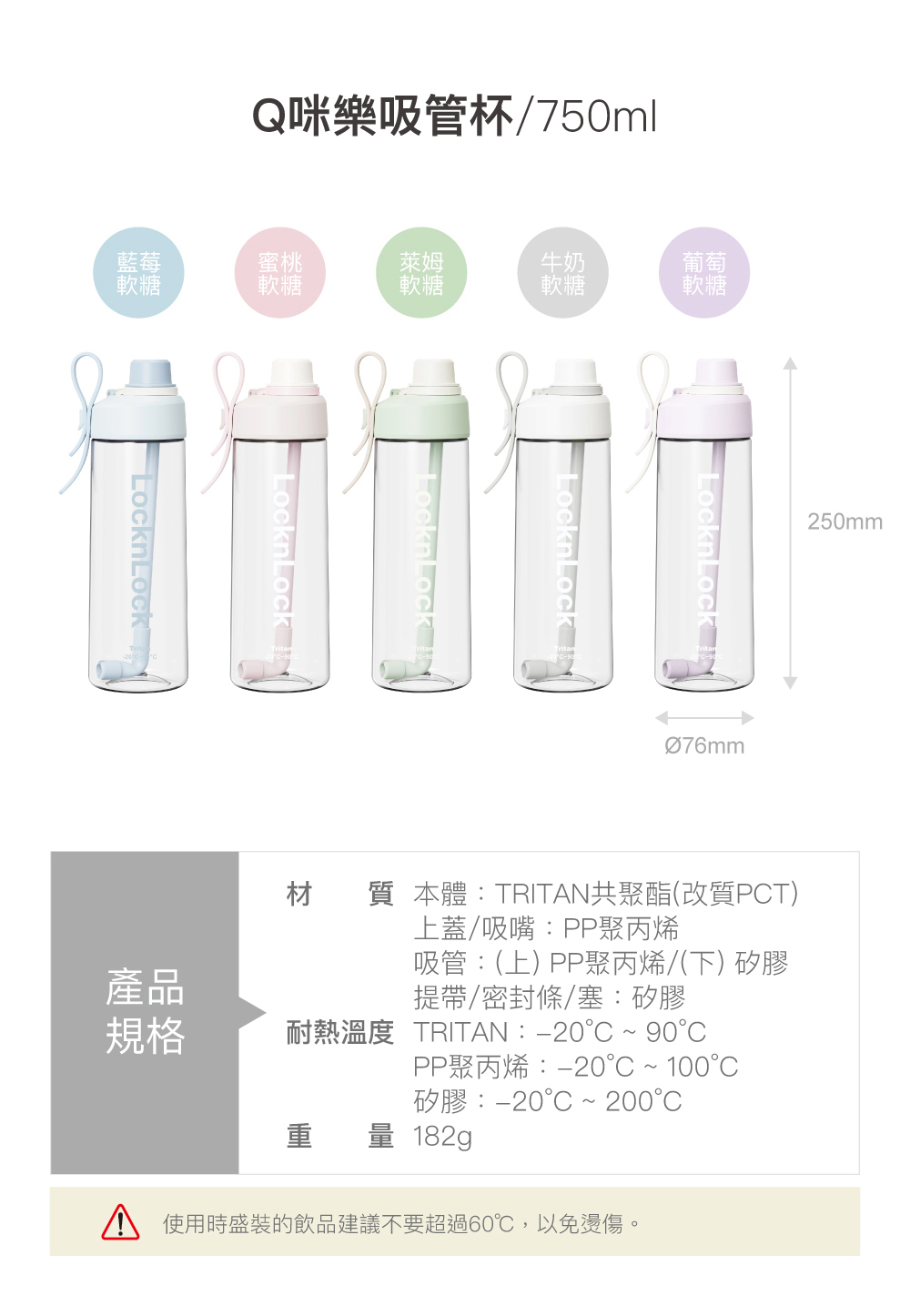 ■耐熱溫度: TRITAN: -20°C~90°C ; PP -20°C ~100°C ; 矽膠 -20°C~200°C