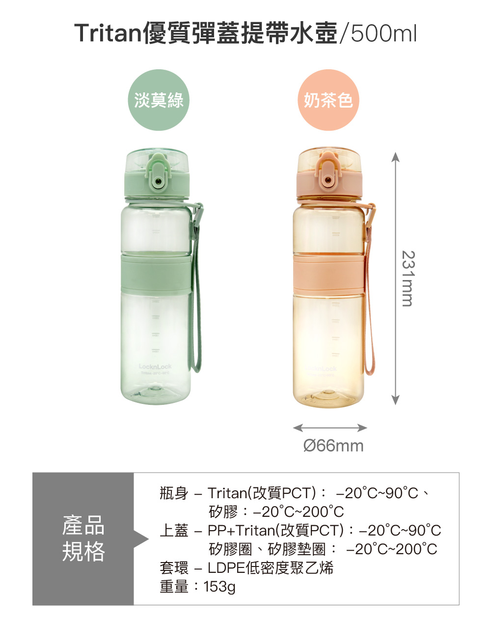 ★瓶身為Tritan(改質PCT)材質,材質輕巧安全,不含塑化劑及雙酚A。