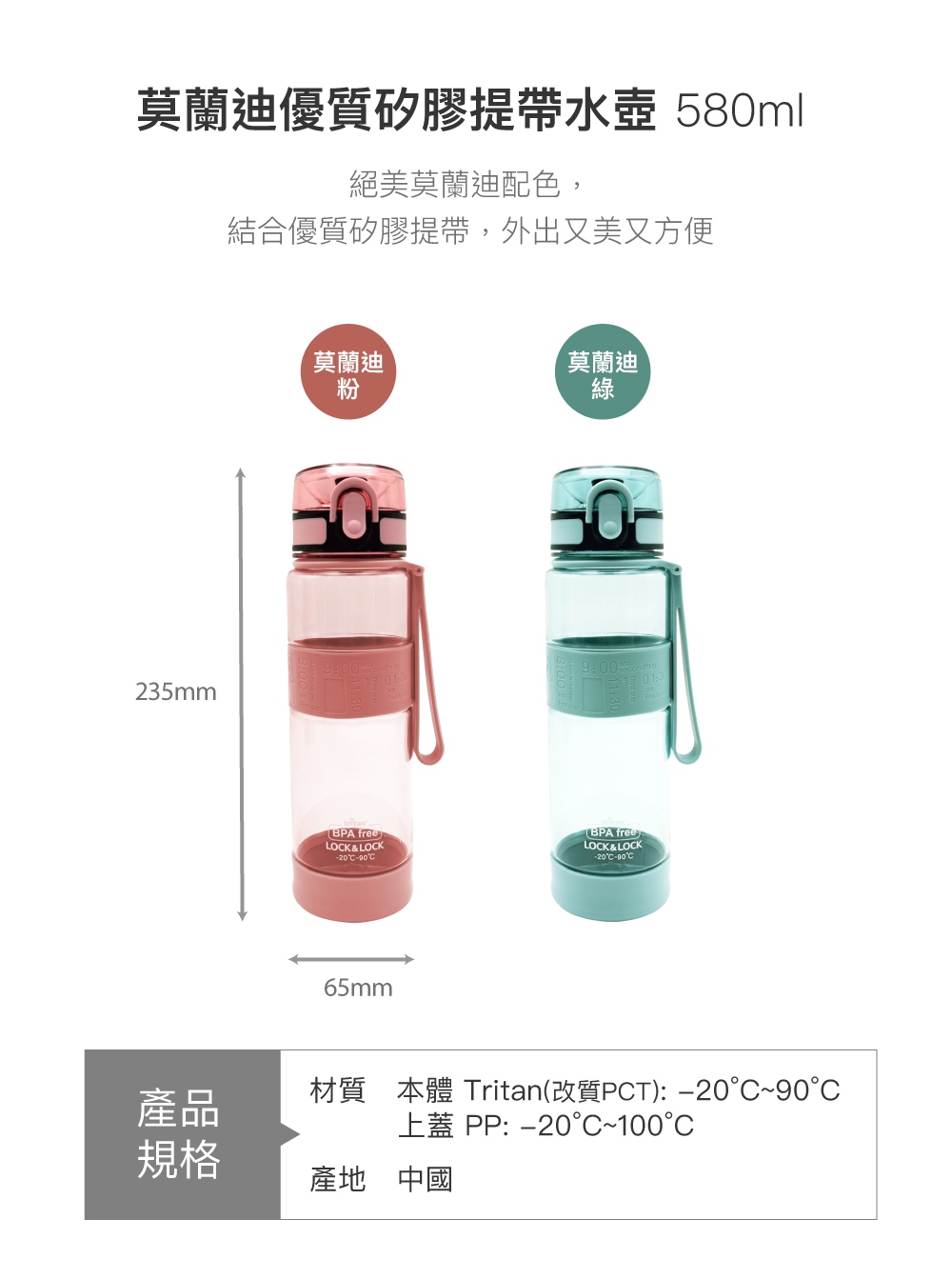 ★多款容量,矽膠腰環瓶身中央,好拿好握。上蓋安全鎖扣,攜帶不漏水