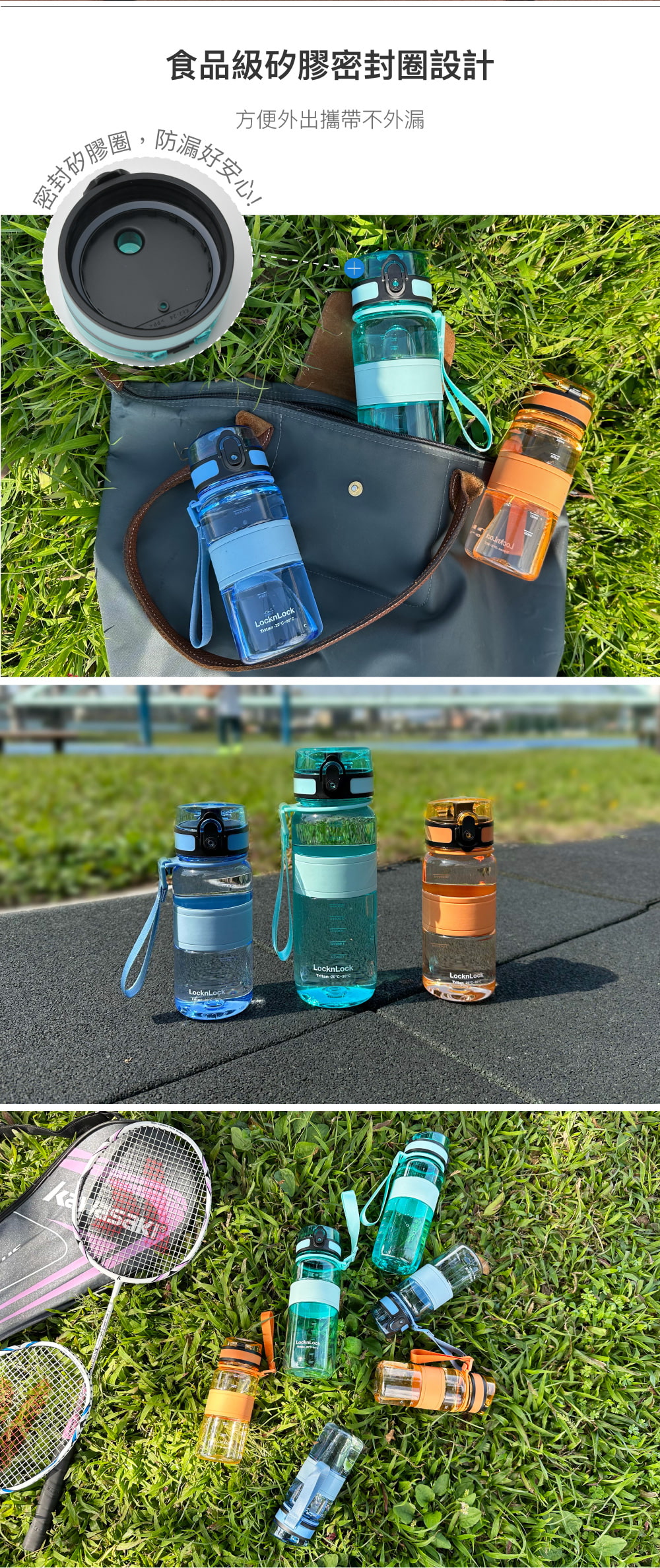 ★多款容量,矽膠腰環瓶身中央,好拿好握。上蓋安全鎖扣,攜帶不漏水