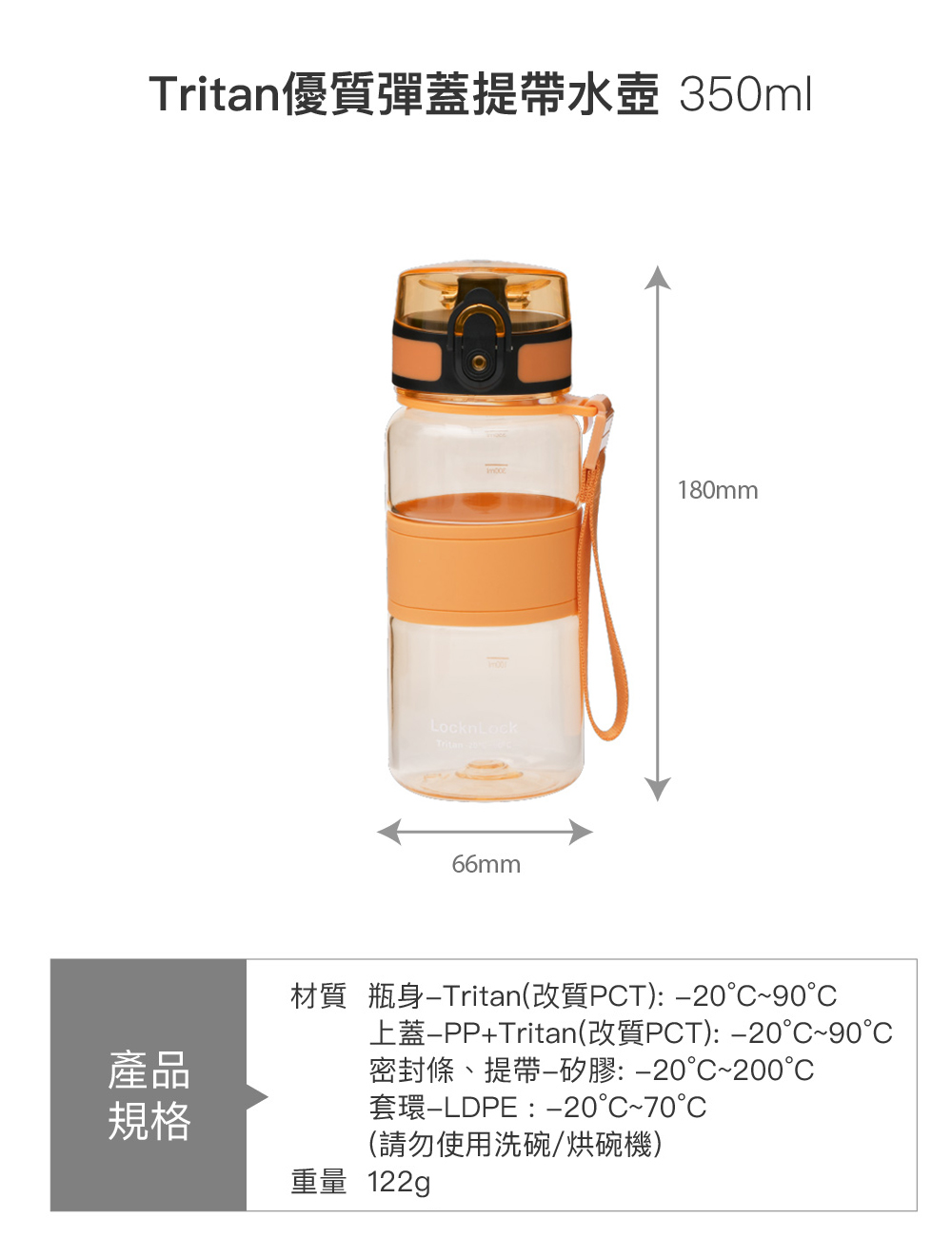 ★瓶身為Tritan(改質PCT)材質,材質輕巧安全,不含塑化劑及雙酚A。