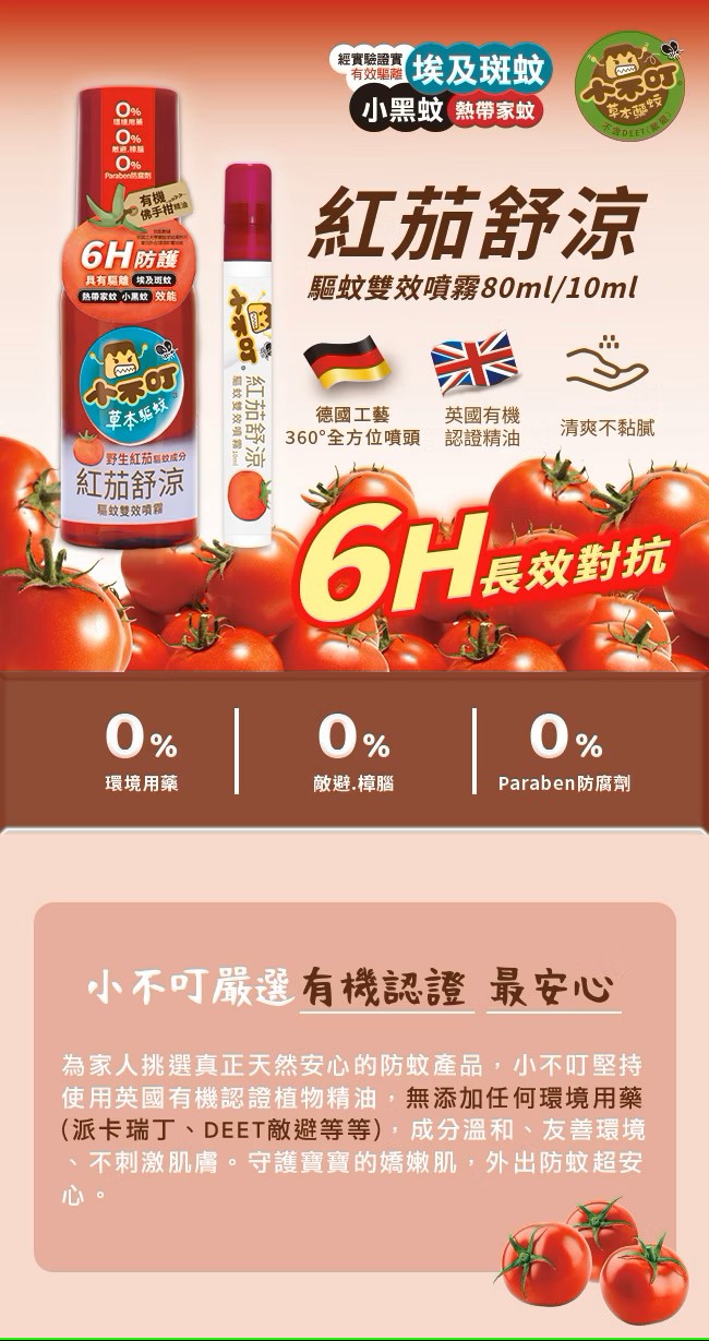 小不叮 紅茄舒涼驅蟲噴霧10ml / 80ml 不含樟腦蠶豆症寶寶也適用